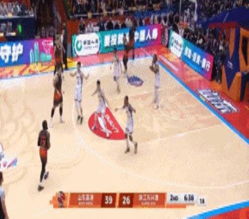 次节开局鲍威尔表现神勇,送上大帽+反击突破+三分连得5分,克里斯隔扣塔克制造2罚,鲍威尔反击三分再进,山东一波3分钟13-6,一口气领先来到39-24!