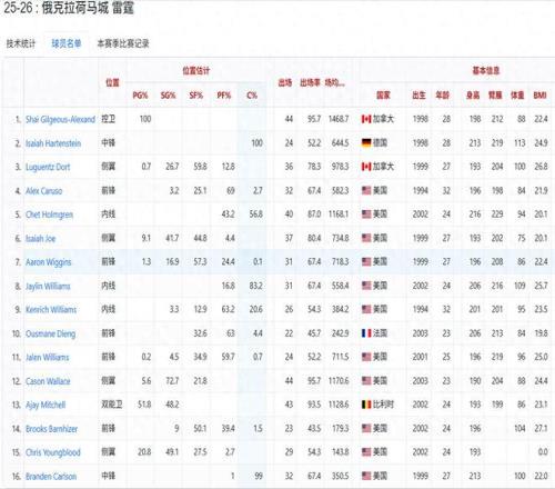 队内三号位出战率最高的当属多尔特和维金斯,两位球员身高分别为193公分和196公分。哪怕个人防守能力很强面对重型锋线对位也很吃力。有同样困境的还有四号位,因为哈腾移动慢投射能力不足只能出任五号位,因此一旦碰上打小阵容对手时,雷霆就必须撤下哈腾将霍姆格伦顶上五号位,本赛季至今霍姆格伦有56.8%的时间打五号位,打四号位的时间只有43.2%。当霍姆格伦顶上五号位时,杰伦威和威廉姆斯就得从三号位上提到四号位。二人同样打四号位身高严重不足,这也意味着当霍姆格伦被迫打五、杰伦威打四时,雷霆场上五人体型最小最容易被拥有大体型锋线的球队针对吊打。这也是为什么他们打不过马刺、猛龙、开拓者的根本原因。
