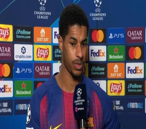 欧冠联赛阶段第8轮,巴塞罗那主场4-1击败哥本哈根,此役替补登场打入一球的拉什福德赛后接受了TNT体育的采访。