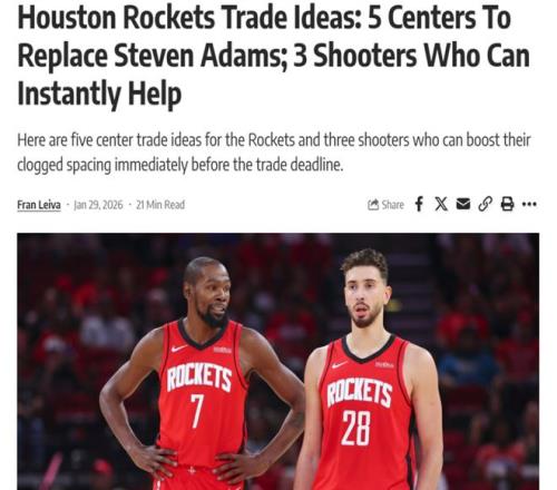 名记曝火箭计划,4人被视作未来!美媒送8笔交易方案补强中锋射手