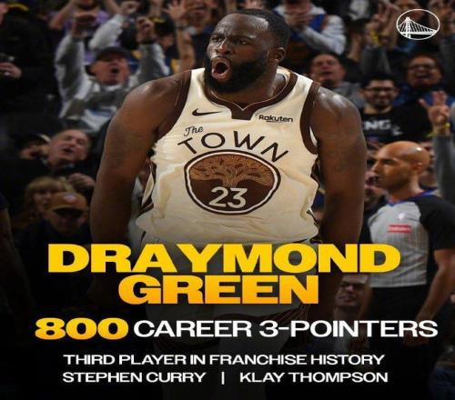 追梦达成生涯800记三分里程碑,成为勇士队史第3人,前两位是库里与克莱。