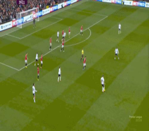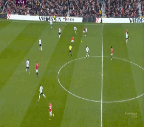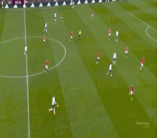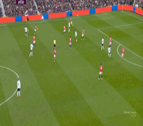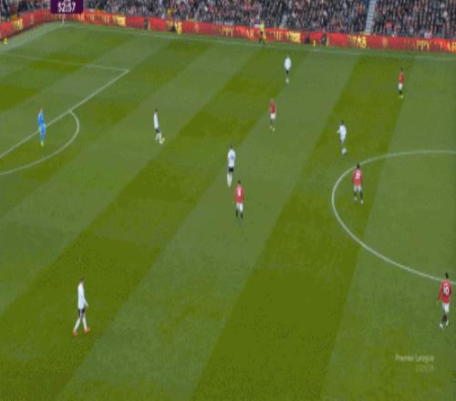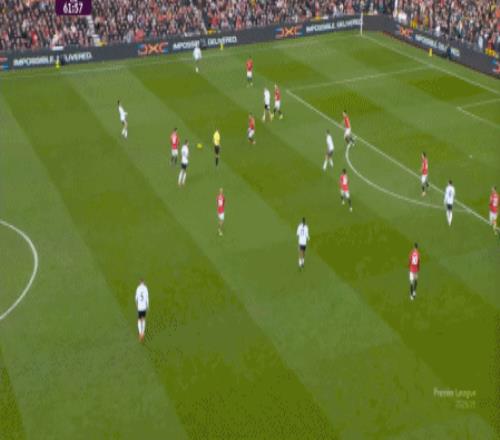 这显然是找对进攻方向的合理收获,但是,曼联的防守压力并未因此减轻,富勒姆在这一侧承压,但也能在这一侧直接向前,不管是在丢球前: