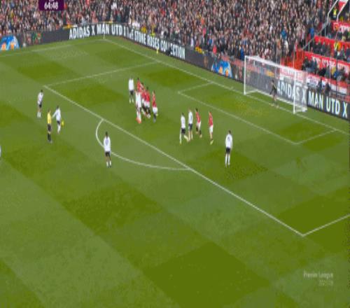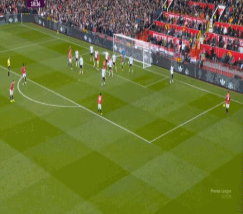 虽然罚球位置从点球点变成了禁区外,但曼联还是通过这次定位球完成得分,卡塞米罗力压的,其实还是昆卡: