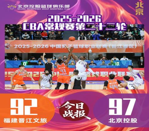 2月1日,北控男篮携三连胜之威,开启南下之旅。在首场与福建晋江文旅的对决中,北控男篮面对对手的猛烈攻势,有条不紊,沉着应对,长时间保持领先优势,最终以97:92力克对手,豪取四连胜。